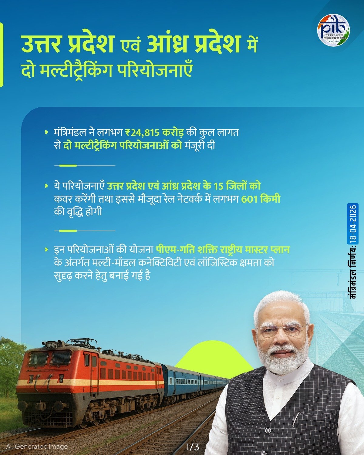 मंत्रिमंडल ने उत्तर प्रदेश और आंध्र प्रदेश राज्यों के 15 जिलों को कवर करने वाली दो मल्टीट्रैकिंग परियोजनाओं को मंजूरी दी
