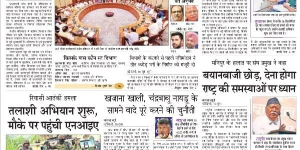 सभी अखबारों ने केन्द्र सरकार में गठन को प्रमुखता से प्रकाशित किया है। दैनिक भास्कर ने लिखा है – मोदी की शपथ 9 को, मंत्रालयों पर मथन। राजस्थान पत्रिका लिखता है- भाजपा के मैराथन मंथन में फॉमूले पर हुआ विचार, टॉप फॉर पर समझौता नहीं। गृह,…