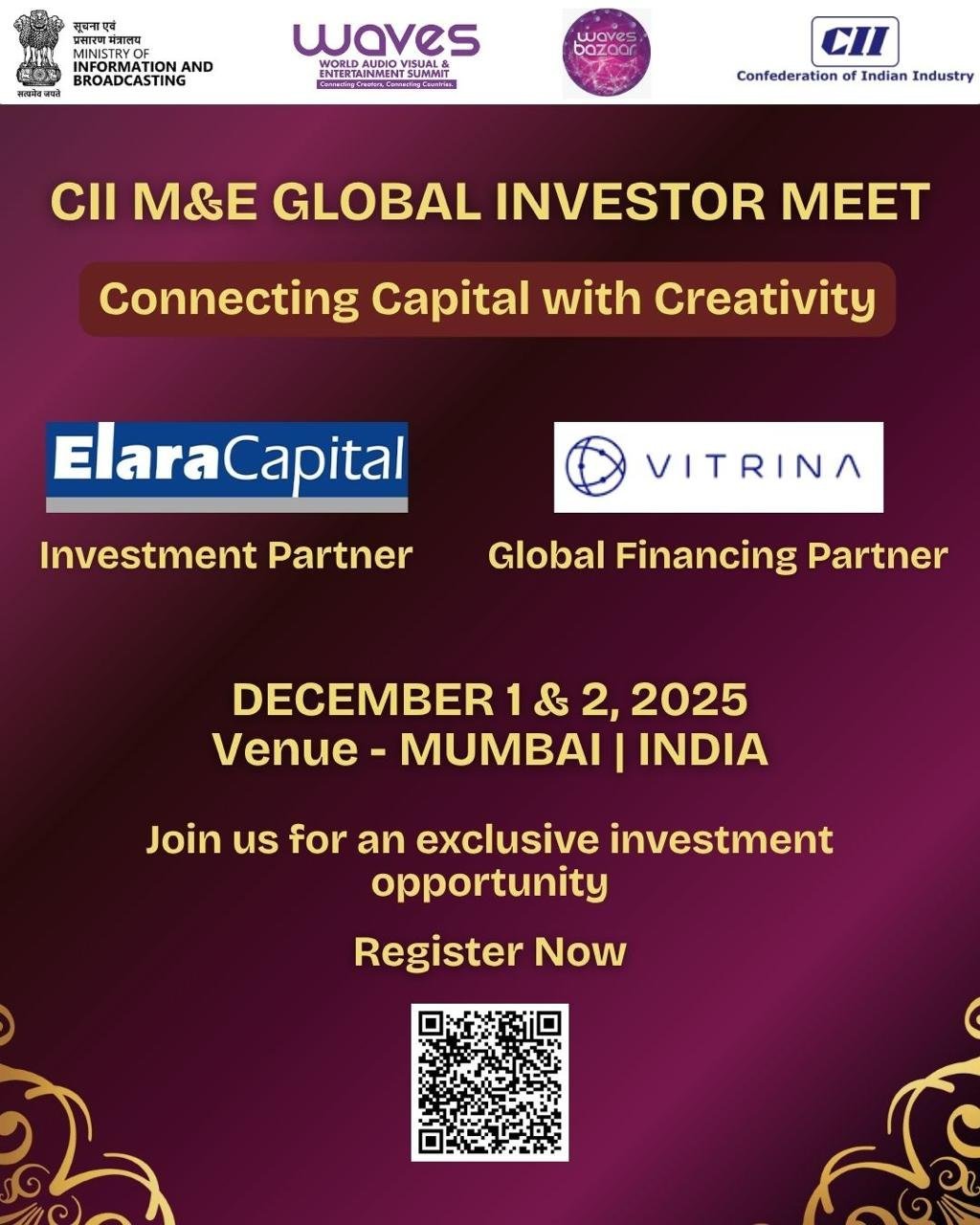 सीआईआई एमएंडई ग्लोबल इन्वेस्टर मीट, चुनिंदा व्यक्तिगत बैठकों के माध्यम से अंतर्राष्ट्रीय निवेशकों को भारत के सबसे आशाजनक उद्यमों से जोड़ेगा। यह पहल भारत के तेजी से बढ़ते एमएंडई क्षेत्र में वैश्विक और घरेलू निवेश को बढ़ावा देने के लिए तैयार है, जिसमें फिल्म, स्ट्रीमिंग, गेमिंग, एनीमेशन, वीएफएक्स, लाइव मनोरंजन आदि शामिल हैं।