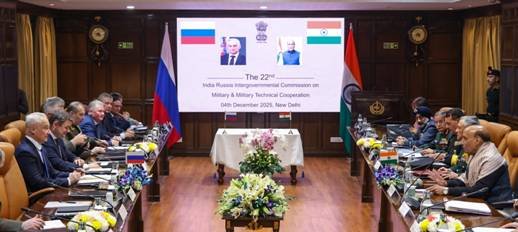 रक्षा मंत्री राजनाथ सिंह और रूस के रक्षा मंत्री आंद्रेई बेलौसोव ने 4 दिसंबर, 2025 को नई दिल्ली के मानेकशॉ सेंटर में सैन्य एवं सैन्य-तकनीकी सहयोग पर भारत-रूस अंतर-सरकारी आयोग (आईआरआईजीसी-एमएंडएमटीसी) के 22वें सत्र की सह-अध्यक्षता की। दोनों पक्षों ने दोहराया कि भारत-रूस संबंध गहरे विश्वास, साझा सिद्धांतों और आपसी सम्मान पर आधारित हैं। यह बैठक प्रधानमंत्री नरेन्द्र मोदी और रूस के राष्ट्रपति व्लादिमीर पुतिन के बीच होने वाले 23वें भारत-रूस वार्षिक शिखर सम्मेलन से पहले हुई है।