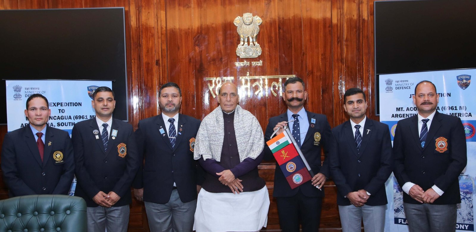 रक्षा मंत्री राजनाथ सिंह ने नई दिल्ली के साउथ ब्लॉक से अर्जेंटीना के माउंट एकोनकागुआ के लिए एक संयुक्त अभियान को हरी झंडी दिखाकर रवाना किया। 6,961 मीटर की ऊंचाई वाला यह पर्वत दक्षिण अमेरिका की सबसे ऊंची चोटी और एशिया के बाहर का सबसे ऊंचा पर्वत है। यह संयुक्त अभियान नेहरू पर्वतारोहण संस्थान (एनआईएम), उत्तरकाशी और जवाहर पर्वतारोहण एवं शीतकालीन खेल संस्थान (जेआईएम एंड डब्ल्यूएस), पहलगाम द्वारा संचालित किया जा रहा है।