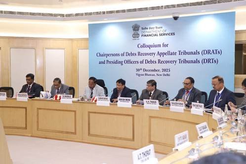 वित्त मंत्रालय के वित्तीय सेवा विभाग (डीएफएस) ने आज नई दिल्ली के विज्ञान भवन में ऋण वसूली अपीलीय अधिकरणों (डीआरएटी) के अध्यक्षों और पीठासीन अधिकारियों की बैठक का आयोजन किया। डीएफएस के सचिव ने बैठक में उपस्थित डीएफएस के वरिष्ठ अधिकारियों, विभिन्न सार्वजनिक और निजी क्षेत्र के बैंकों और भारतीय बैंक संघ के प्रतिनिधियों को संबोधित किया।