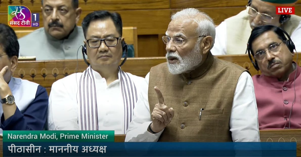 लोकसभा में ऑपरेशन सिंदूर पर विशेष चर्चा का उत्तर देते हुए प्रधानमंत्री ने कहा कि भारत ने पाकिस्तान में काफी अंदर जाकर आतंकवादी ठिकानों को नष्ट किया। उन्होंने कहा कि भारतीय सशस्त्र बलों ने केवल 22 मिनट में आतंकी हमले का बदला ले लिया। प्रधानमंत्री ने कहा भारत ने विश्व को दिखा दिया है कि वह परमाणु हथियारों के नाम पर किसी भी धमकी के सामने झुकने वाला नहीं है। उन्होंने कहा कि ऑपरेशन सिंदूर के दौरान विश्व ने आत्मनिर्भर भारत की ताकत देखी है। स्वदेश में बने ड्रोन और मिसाईलों ने पाकिस्तानी हथियारों तक गोले बारूद की क्षमता को बेनकाब कर दिया। प्रधानमंत्री मोदी ने कहा कि देश की सुरक्षा को लेकर कांग्रेस का दृष्टिकोण कभी भी स्पष्ट नहीं रहा और कांग्रेस के नेतृत्व वाली सरकारों के कमजोर शासन के कारण आतंकी हमलों में अनेक नागरिकों को अपनी जान गंवानी पडी। इससे पहले, गृह मंत्री अमित शाह ने कहा कि हमले के मामले की जांच में जुटी टीम ने एक हजार से अधिक लोगों से पूछताछ की और उनसे मिली जानकारी के आधार पर आतंकवादियों की तस्वीर बनाई गईं। अमित शाह ने पाकिस्तान को क्लीन चिट देने और आतंकवादियों के पाकिस्तान का होने का सबूत मांगने पर पूर्व गृह मंत्री पी. चिदम्बरम की आलोचना की।