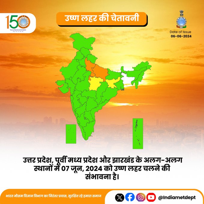 उत्तर प्रदेश के कुछ भागों में सोमवार तक गर्म हवाएं चलती रहेंगी। मध्य प्रदेश, झारखंड, पंजाब, हरियाणा, बिहार और ओडिसा में भी अगले दो से तीन दिन तक गर्म हवाएं जारी रहने का अनुमान है। दिल्ली में अगले दो दिन तक गरज के साथ धूल भरी आंधी चल सकती है।