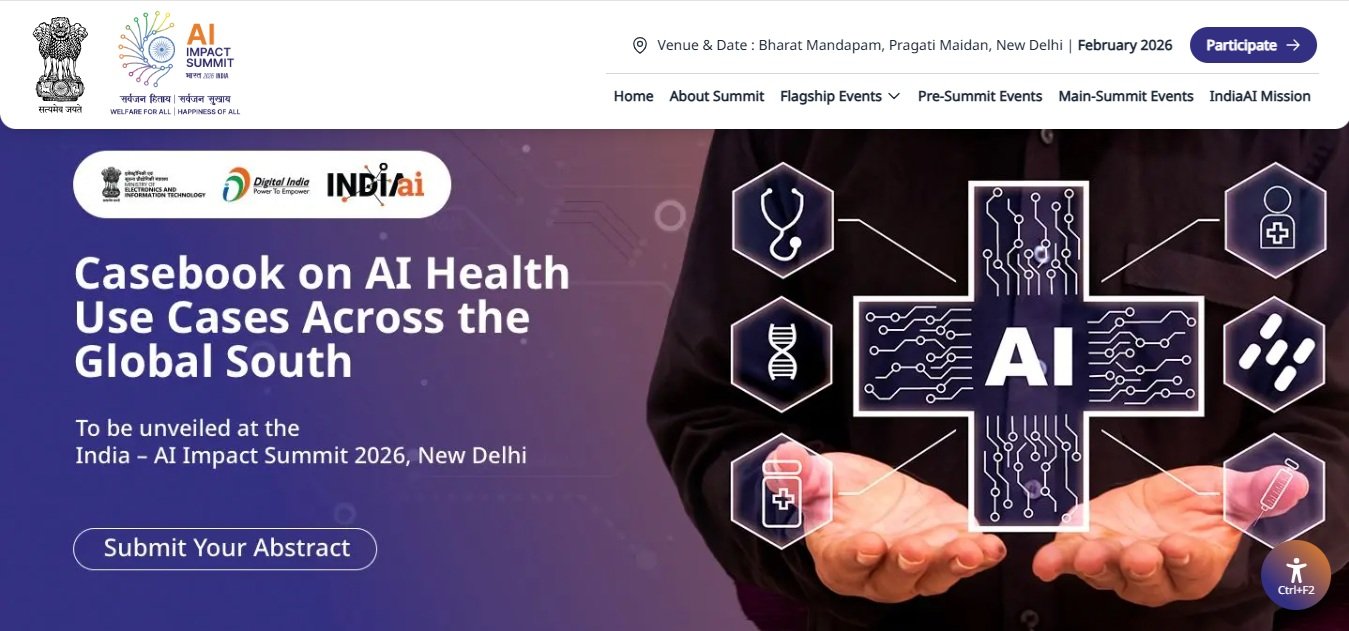 भारत सरकार के इलेक्ट्रॉनिक्स एवं सूचना प्रौद्योगिकी मंत्रालय के इंडिया-एआई मिशन ने विश्व स्वास्थ्य संगठन (WHO) के सहयोग से स्वास्थ्य प्रणालियों में आर्टिफिशियल इंटेलिजेंस (AI) के प्रभावशाली और स्केलेबल अनुप्रयोगों पर प्रकाश डालने वाले सार-संक्षेपों के लिए एक वैश्विक आह्वान की घोषणा की है। चयनित प्रविष्टियों को “वैश्विक दक्षिण में एआई स्वास्थ्य उपयोग के मामलों पर केसबुक” में एक अध्याय लिखने के लिए आमंत्रित किया जाएगा। इसका विमोचन फरवरी में नई दिल्ली में आयोजित होने वाले इंडिया-एआई इम्पैक्ट समिट 2026 में किया जाएगा।