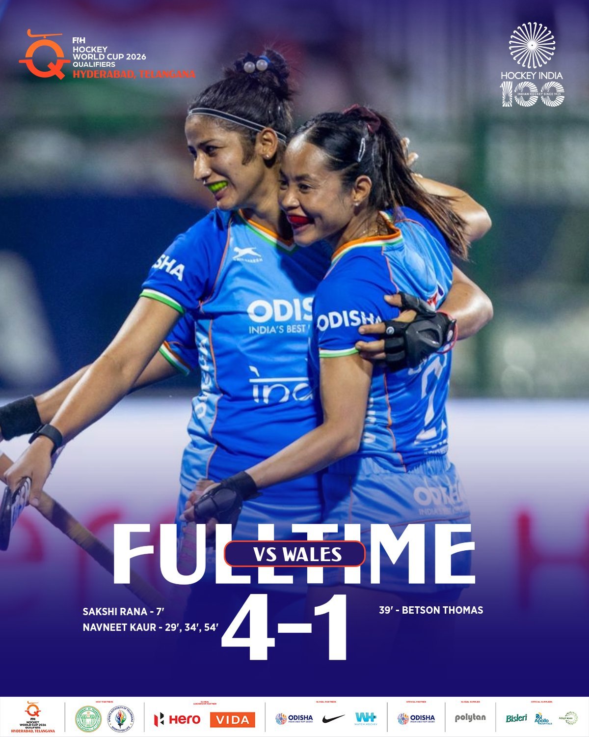 F.I.H- हॉकी महिला विश्व कप क्वालीफायर 2026 में, भारतीय टीम ने कल शाम हैदराबाद में पूल बी के मुकाबले में वेल्स को 4-1 से हरा दिया। इस जीत के साथ, भारत ने सेमीफाइनल में जगह बना ली है। अब कल सेमीफाइनल मुकाबले में भारत की भिड़ंत इटली से होगी।
