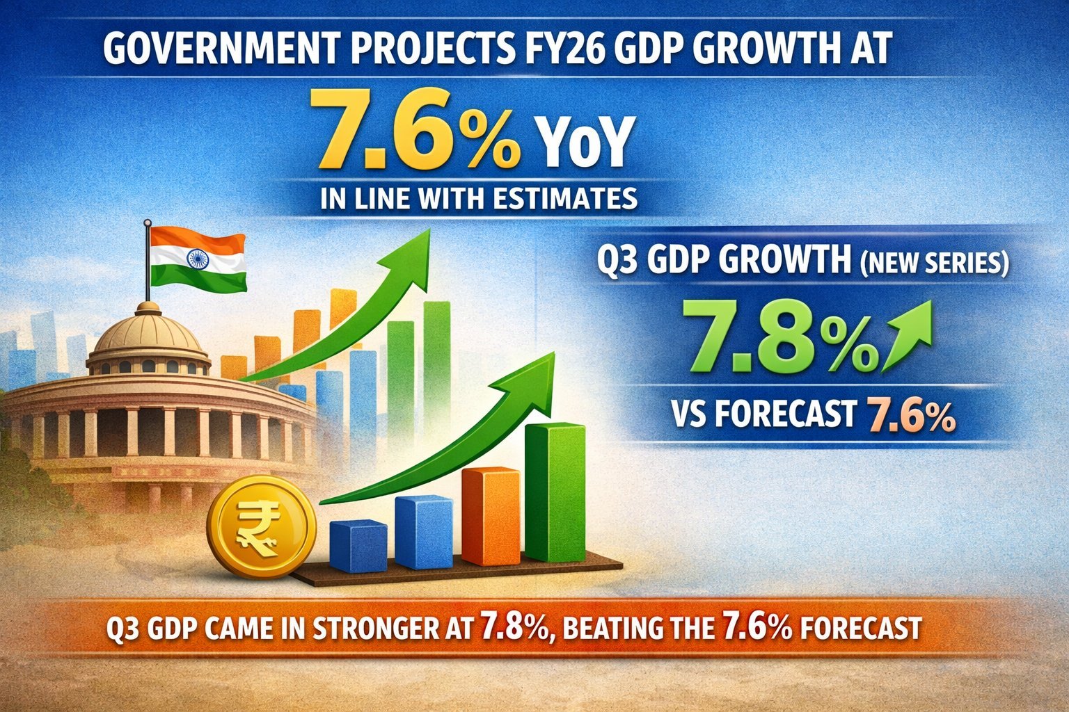 भारतीय अर्थव्यवस्था में चालू वित्त वर्ष की तीसरी तिमाही में सात दशमलव आठ प्रतिशत की वृद्धि दर्ज की गई है। वर्ष 2025-26 के दौरान वास्तविक सकल घरेलू उत्पाद वृद्धि दर सात दशमलव छह प्रतिशत रहने का अनुमान है। वर्ष 2024-25 में यह सात दशमलव एक प्रतिशत थी।