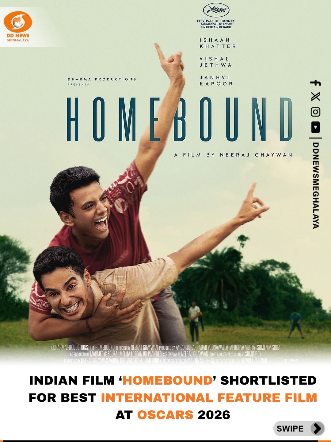भारतीय फिल्म होमबाउंड को 98वें ऑस्कर पुरस्कार की सर्वश्रेष्ठ फीचर फिल्म श्रेणी के लिए नामित किया गया है। नीरज घेवान के निर्देशन में बनी यह फिल्म इस श्रेणी के लिए नामित 15 फिल्मों में शामिल है।
