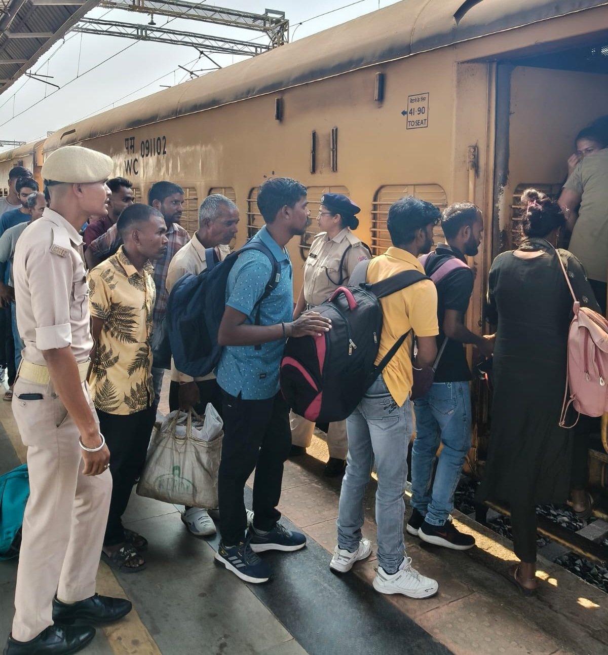 रेलवे कर्मचारी यात्रियों की सहायता और व्यवस्था बनाए रखने के लिए चौबीसों घंटे काम कर रहे हैं ताकि त्योहारों के दौरान सभी सुरक्षित घर पहुँच सकें।