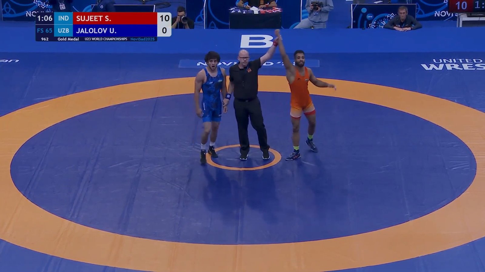 सुजीत कलकल ने कल सर्बिया में अंडर-23 विश्व कुश्ती चैंपियनशिप के पुरुषों के फ्रीस्टाइल 65 किलोग्राम वर्ग में स्वर्ण पदक जीता। उन्होंने खिताबी मुकाबले में उज़्बेकिस्तान के उमिदजोन जलोलोव को 10-0 से हराया।