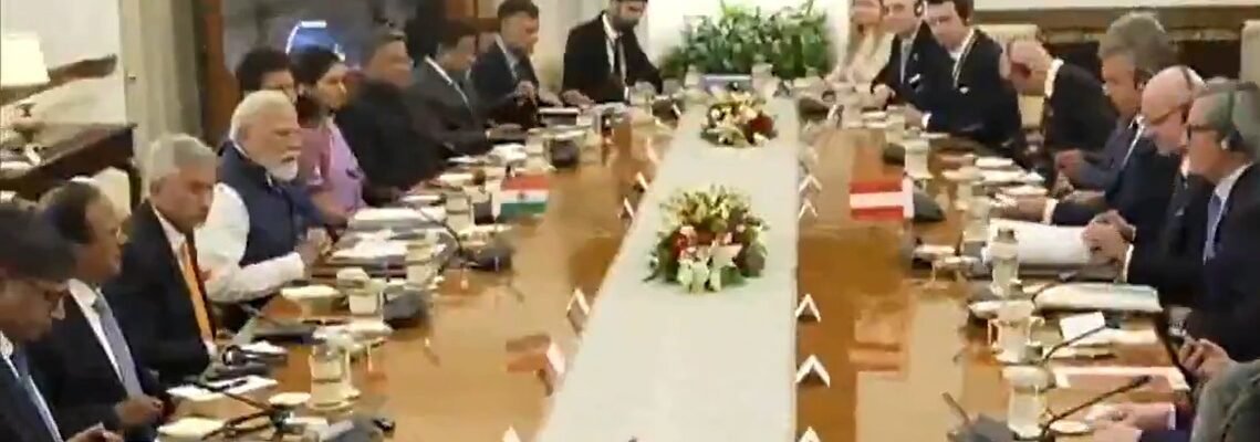 प्रधानमंत्री नरेंद्र मोदी और ऑस्ट्रिया के फेडरल चांसलर डॉ. क्रिश्चियन स्टॉकर ने डेलीगेशन लेवल की बातचीत की
