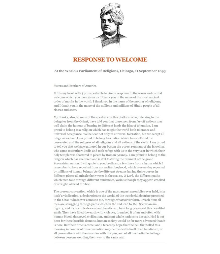 प्रधानमंत्री मोदी ने वर्ष 1893 में शिकागो में विश्व धर्म संसद में स्वामी विवेकानंद के ऐतिहासिक भाषण को साझा किया