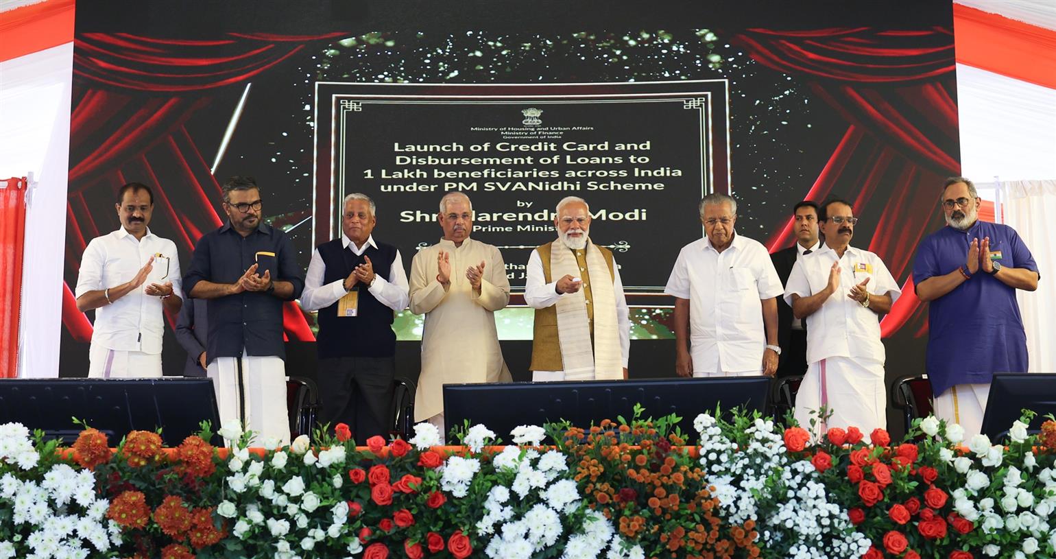 शहरी आजीविका को मजबूत करने के प्रयासों के तहत, प्रधानमंत्री ने पीएम स्वनिधि क्रेडिट कार्ड का शुभारम्भ किया, जो रेहड़ी-पटरी वालों के लिए वित्तीय समावेशन के अगले चरण का प्रतीक है। यूपीआई से जुड़ी यह ब्याज-मुक्त रिवॉल्विंग ऋण की सुविधा तत्काल नकदी प्रवाह प्रदान करेगी, डिजिटल लेनदेन को बढ़ावा देगी और लाभार्थियों को औपचारिक ऋण इतिहास बनाने में मदद करेगी। प्रधानमंत्री ने केरल के रेहड़ी-पटरी वालों सहित एक लाख लाभार्थियों को पीएम स्वनिधि ऋण भी वितरित किए। 2020 में अपनी शुरुआत के बाद से, पीएम स्वनिधि योजना से ज़्यादातर लाभार्थियों को पहली बार औपचारिक ऋण उपलब्ध कराने में मदद मिली है और इसने शहरी अनौपचारिक कामगारों के बीच गरीबी उन्मूलन और आजीविका सुरक्षा सुनिश्चित करने में महत्वपूर्ण भूमिका निभाई है।