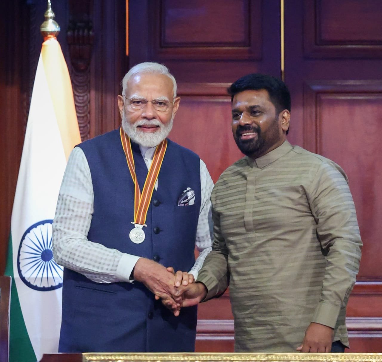 प्रधानमंत्री नरेन्द्र मोदी को आज श्रीलंका के राष्ट्रपति दिसानायके ने ‘श्रीलंका मित्र विभूषण’ से सम्मानित किया। आभार व्यक्त करते हुए प्रधानमंत्री मोदी ने कहा कि यह भारत और श्रीलंका के लोगों के बीच गहरी मित्रता और ऐतिहासिक संबंधों का प्रतीक है।