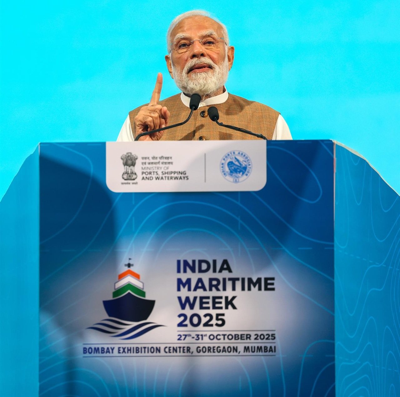 प्रधानमंत्री नरेन्द्र मोदी ने आज महाराष्ट्र के मुंबई में भारत समुद्री सप्ताह 2025 के अवसर पर वैश्विक समुद्री नेतृत्व सम्मेलन को संबोधित किया और वैश्विक समुद्री मुख्य कार्यकारी अधिकारी मंच की अध्यक्षता की। प्रधानमंत्री ने इस अवसर पर अपने संबोधन मेंवैश्विक समुद्री नेतृत्व सम्मेलन में सभी प्रतिभागियों का स्वागत किया। उन्होंने कहा कि यह आयोजन 2016 में मुंबई में शुरू हुआ था और इस बात पर प्रसन्नता व्यक्त की कि अब यह एक वैश्विक शिखर सम्मेलन के रूप में विकसित हो गया है। प्रधानमंत्री मोदी ने इस बात पर प्रकाश डाला कि 85 से अधिक देशों की भागीदारी एक मजबूत संदेश देती है। उन्होंने इस कार्यक्रम में एकत्रित प्रमुख नौवहन प्रतिनिधियों, स्टार्टअप्स, नीति निर्माताओं और नवप्रवर्तकों के मुख्य कार्यकारी अधिकारियों की उपस्थिति का उल्लेख किया। उन्होंने छोटे द्वीपीय देशों के प्रतिनिधियों की उपस्थिति को भी स्वीकार करते हुए कहा कि उनके सामूहिक दृष्टिकोण ने शिखर सम्मेलन के तालमेल और ऊर्जा को महत्वपूर्ण रूप से बढ़ाया है।