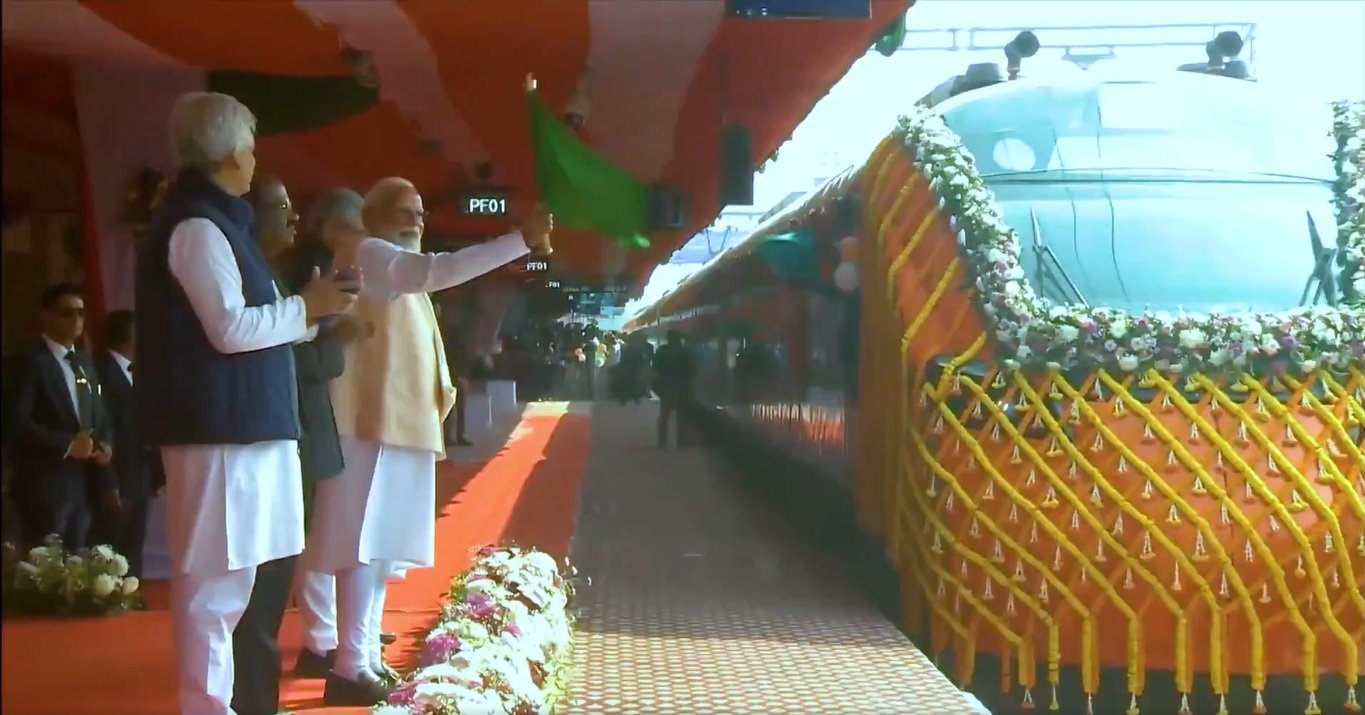 प्रधानमंत्री नरेन्द्र मोदी ने आज पश्चिम बंगाल के मालदा रेलवे स्टेशन से हावड़ा और गुवाहाटी(कामाख्या) के बीच चलने वाली भारत की पहली वंदे भारत स्लीपर ट्रेन को झंडी दिखाकर रवाना किया। प्रधानमंत्री मोदी ने गुवाहाटी-हावड़ा वंदे भारत स्लीपर ट्रेन को भी वर्चुअल रूप से झंडी दिखाई। पूरी तरह से वातानुकूलित वंदे भारत स्लीपर ट्रेन यात्रियों को किफायती किराए पर हवाई यात्रा जैसा अनुभव प्रदान करेगी।