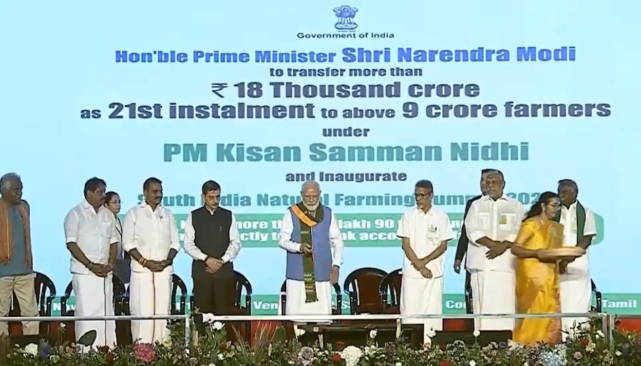 प्रधानमंत्री नरेंद्र मोदी ने लाभार्थियों को पीएम-किसान सम्मान निधि की 21वीं किस्त हस्तांतरित की। 9 करोड़ लाभार्थियों के बैंक खातों में 18,000 करोड़ रुपये से अधिक की राशि सीधे हस्तांतरित की गई।