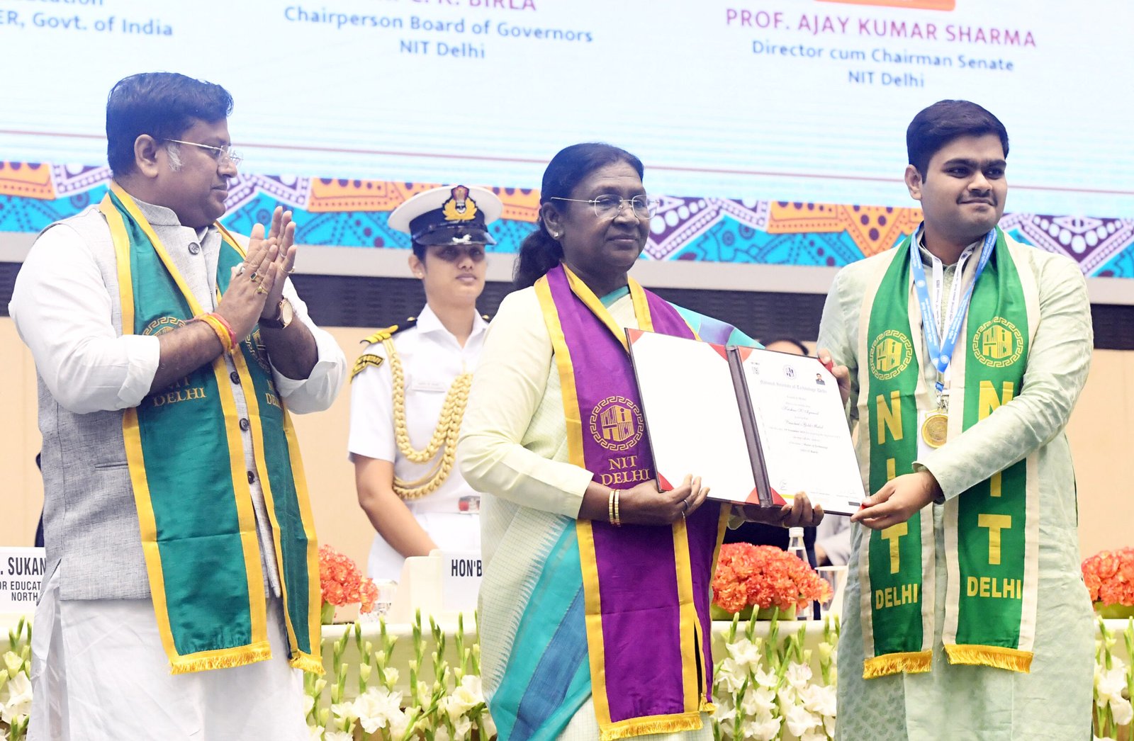 राष्ट्रपति ने अपने संबोधन में कहा कि एनआईटी दिल्ली ने बहुत कम समय में राष्ट्रीय स्तर पर अपनी पहचान बनाई है और उन्हें यह जानकर प्रसन्नता हुई है कि संस्थान आधुनिक अवसंरचना और शैक्षणिक उत्कृष्टता पर ध्यान केंद्रित कर रहा है। उन्होंने कहा कि बहु-विषयी शिक्षा, नवोन्मेष, अनुसंधान, उद्यम क्षेत्रों के साथ सहयोग और कौशल-जनित शिक्षा को बढ़ावा देकर, यह संस्थान छात्रों को भविष्योन्मुखी आवश्यकताओं के लिए सक्षम बना रहा है।