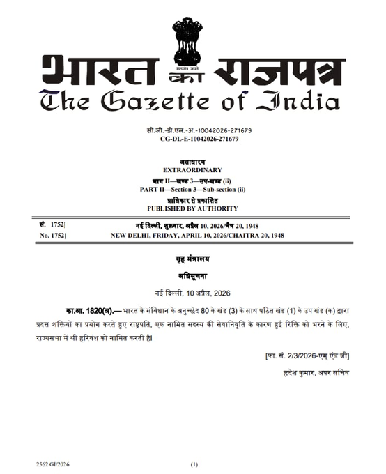 राष्ट्रपति ने पूर्व CJI रंजन गोगोई के अपनी सीट से सेवानिवृत्त होने के बाद खाली हुई सीट को भरने के लिए JD(U) के हरिवंश नारायण सिंह को राज्यसभा के लिए नामित किया है।