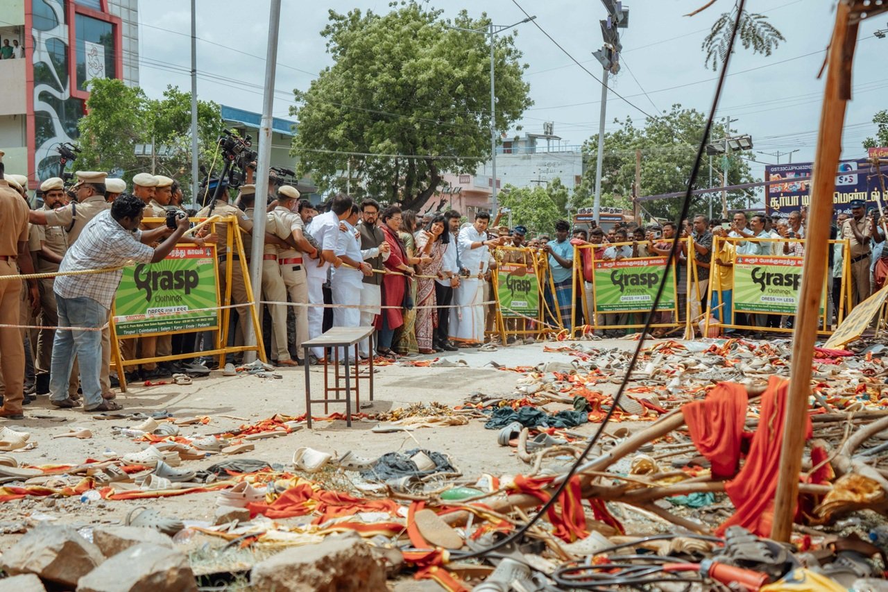 तमिलनाडु पुलिस ने करूर भगदड़ मामले में तीन लोगों को गिरफ्तार किया है। तमिलग् वेत्री कड़गम पार्टी पदाधिकारी मदिअरगन और मासी पउनराज को कल शाम करूर पुलिस ने तलब किया था। पूछताछ के बाद पुलिस ने उन्हें गिरफ्तार कर लिया और अदालत में पेश किया। करूर भगदड़ के बारे में झूठी खबर फैलाने के आरोप में एक यूट्यूबर फेलिक्स गेराल्ड को भी गिरफ्तार किया गया है।