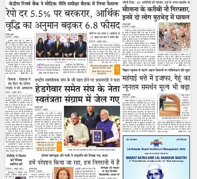 रिजर्व बैंक के रेपो दर को साढ़े पांच प्रतिशत पर बरकरार रखने को भी जनसत्ता सहित सभी अखबारों ने प्रकाशित किया है। हिन्दुस्तान ने लिखा है- कर्ज लेना महंगा नहीं होगा।