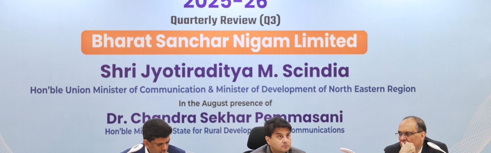 नई दिल्ली स्थित विज्ञान भवन में आयोजित इस बैठक में बीएसएनएल की तीसरी तिमाही के प्रदर्शन और प्रमुख सेवा गुणवत्ता मानकों की व्यापक समीक्षा की गई। केंद्रीय मंत्री ज्योतिरादित्य एम. सिंधिया ने बीएसएनएल के मोबाइल ग्राहक आधार और एआरपीयू बढ़ाने, सेवा गुणवत्ता मापदंडों में सुधार तथा राजस्व लक्ष्यों को प्राप्ति की आवश्यकता पर बल दिया।